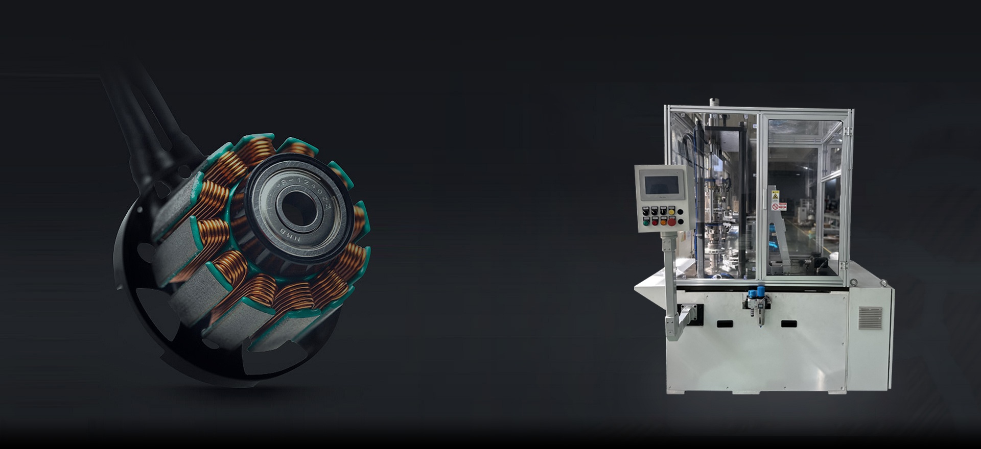 該設備采用PLC控制、觸摸式顯示控制終端,端子插入深度精確可調。配置伺服旋轉定子和氣動平移定子機構,自動定位端子插入位置,可以快速、方便、可靠的連接電機定子繞組,可與機械手接口對接,實現全自動化作業。